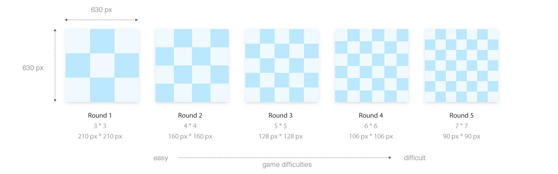The test of puzzle game grid size: make sure that every single touch can be detected since this game is a time limited puzzle game. The sensibility of touch affects the result directly
